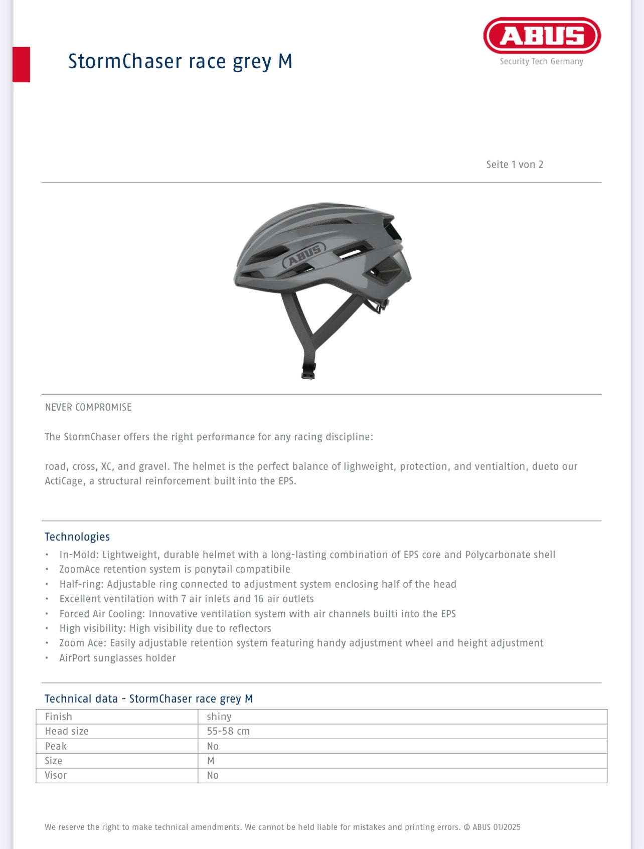 - Excellent ventilation with 7 air inlets and 16 air outlets