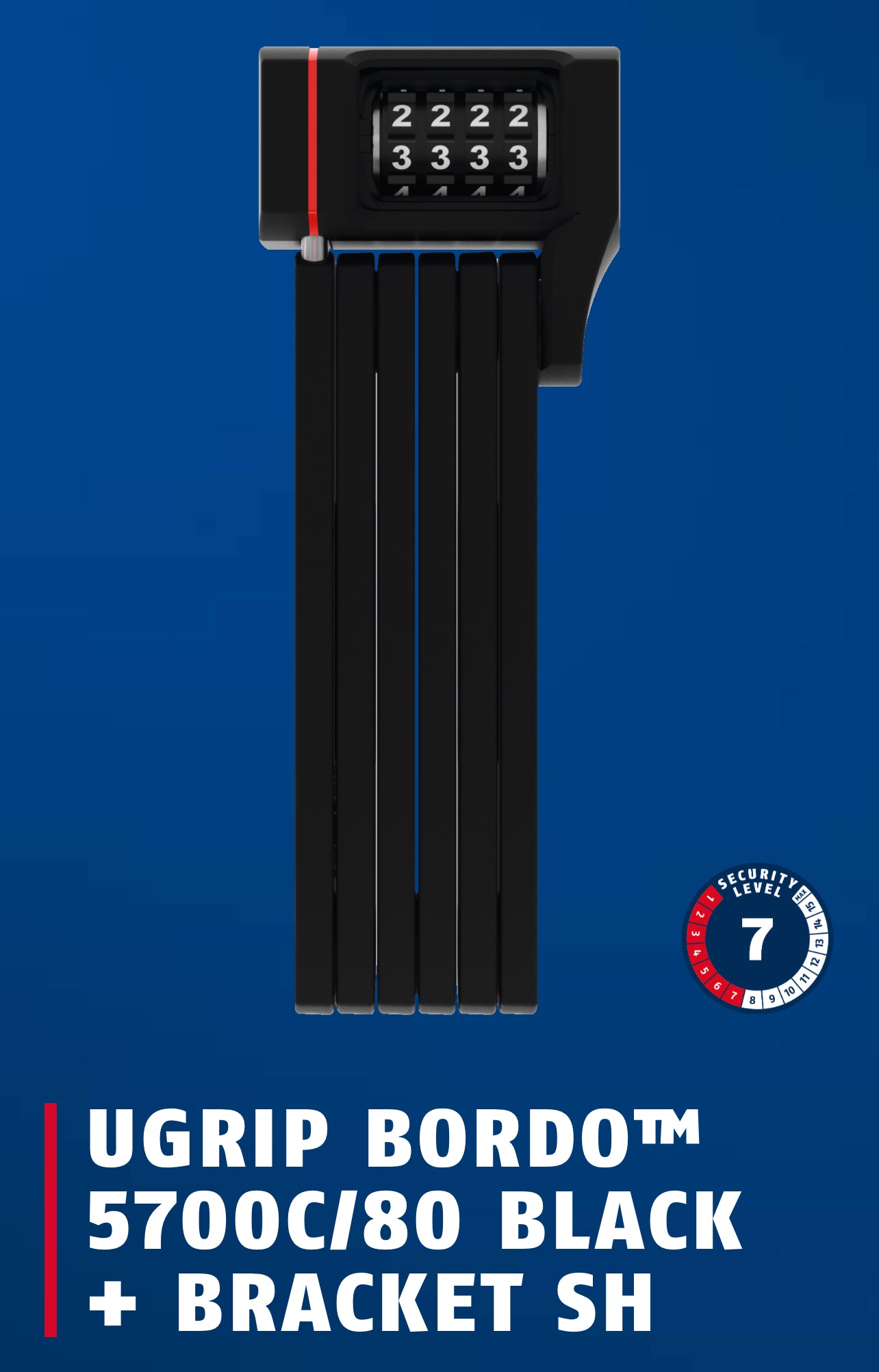 Angular shaped look, wide range of colours: the uGrip BORDO™ 5700 Combo folding lock. Beside great safety features the lock can be locked conventiently by number combination.