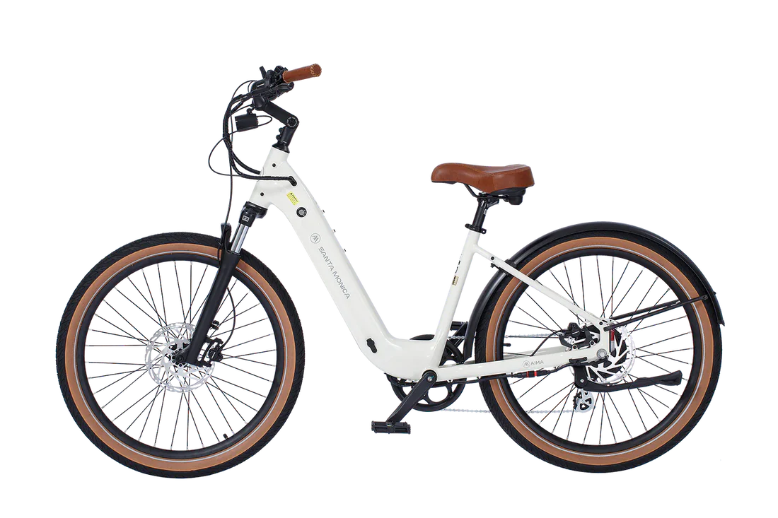 Santa Monica is outfitted with Tektro hydraulic disc brakes and industry-leading 203mm rotors, ensuring smooth and safe braking. With this advanced braking system, riders experience enhanced control and confidence on every journey.