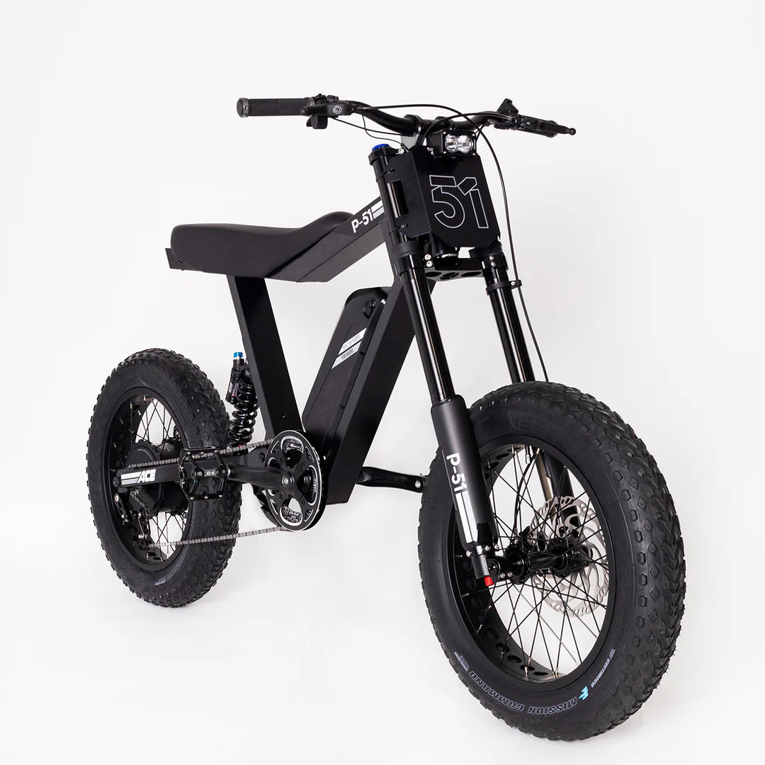 Suspension: This is the P-51 difference. The Bullet uses an adjustable triple clamp 27-inch KKE front fork and direct mount adjustable rear DNM piggyback coil over. Suspension travel is 200 mm in the front and 140 mm of wheel travel in the rear